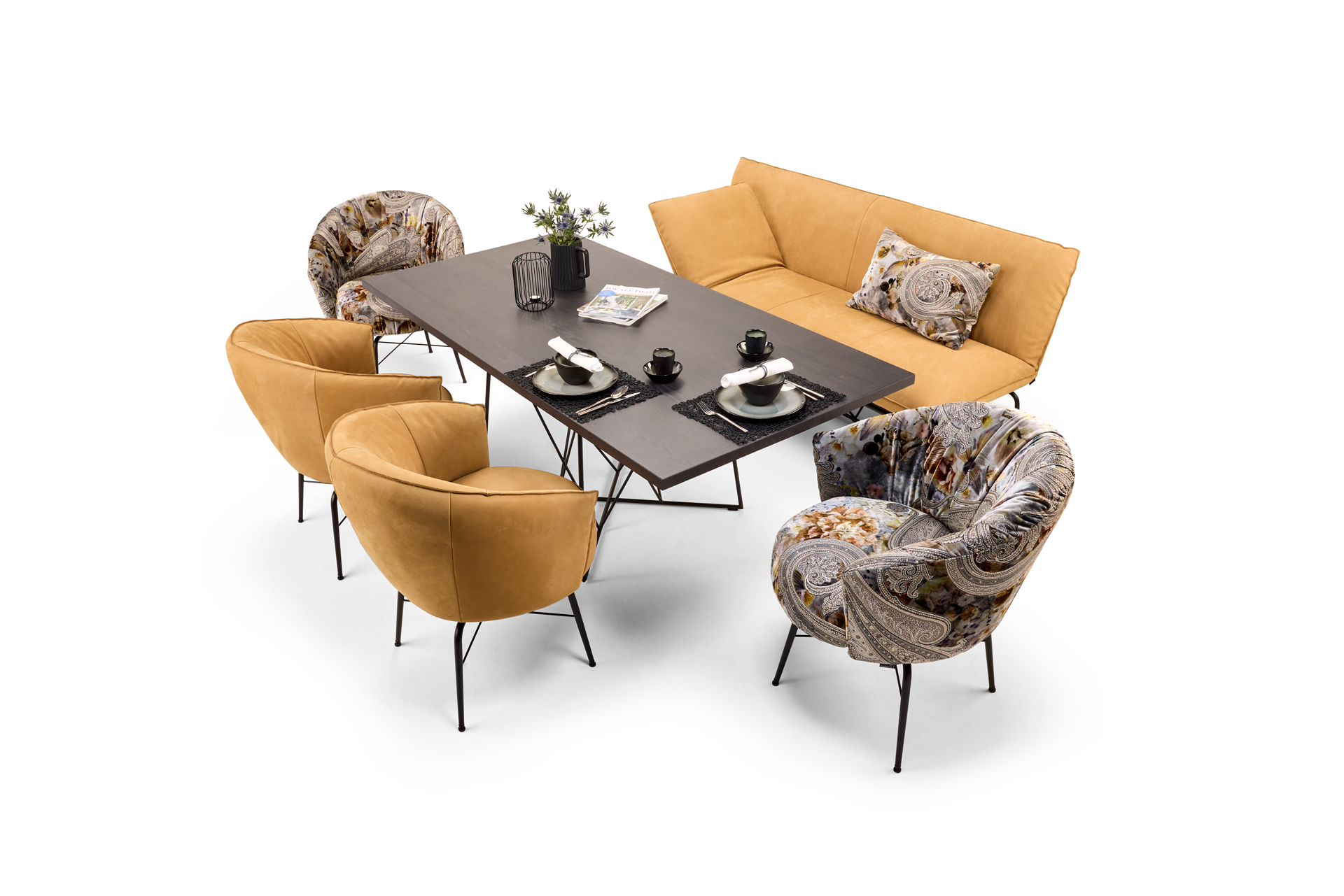 DINING LUXERY. DESIGN, COMFORT AND OPULENCE. SWIVEL SEATS WITH THE ARMREST COMFORT OF AN ARMCHAIR IN COMBINATION WITH THE DECORATIVE DINING SOFA, AS WELL AS TABLES MADE OF SOLID REAL WOOD AND GRACEFUL STEEL DESIGN. MATERIAL, FUNCTION AND CRAFTSMANSHIP FROM ONE MOULD. CHARMINGLY SEDUCTIVE TEXTILES OF THE BEST QUALITY, OR A SELECTION OF OUR LEATHER COVERS STAND FOR THE SPECIAL BULLFROG COUTURE. SIMPLY OWN, FEEL GOOD AND ENJOY. A TRULY CREATIVE PRODUCT FROM BULLFROG. UNIQUE PIECE PRODUCTION.