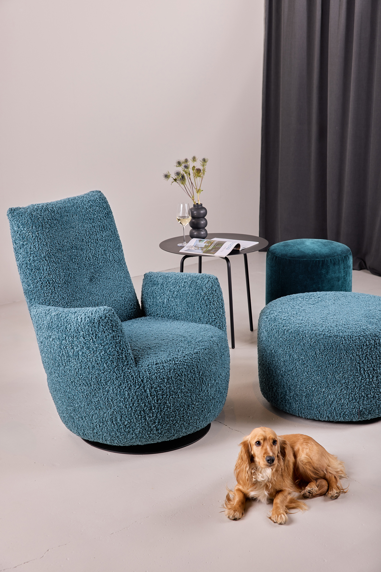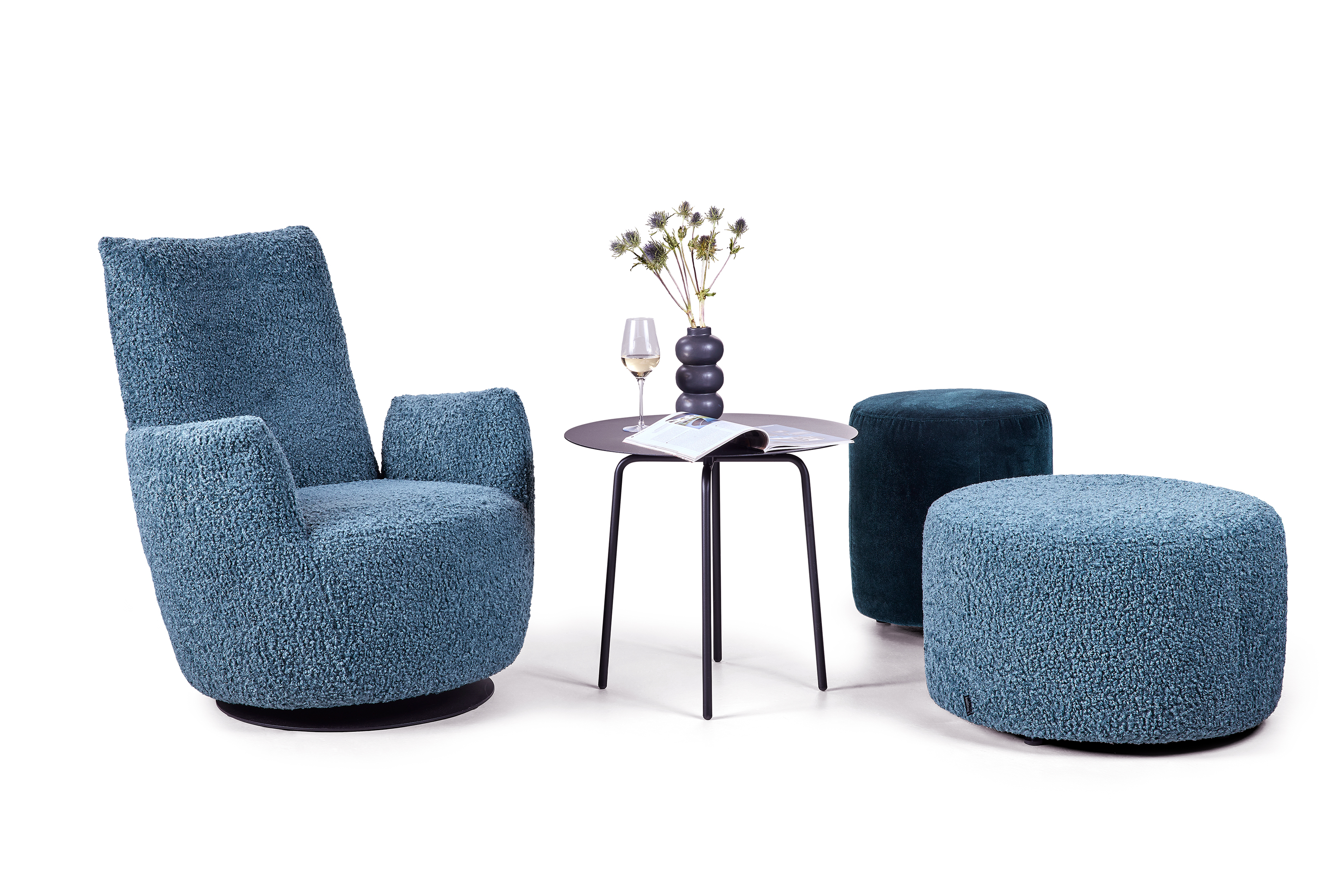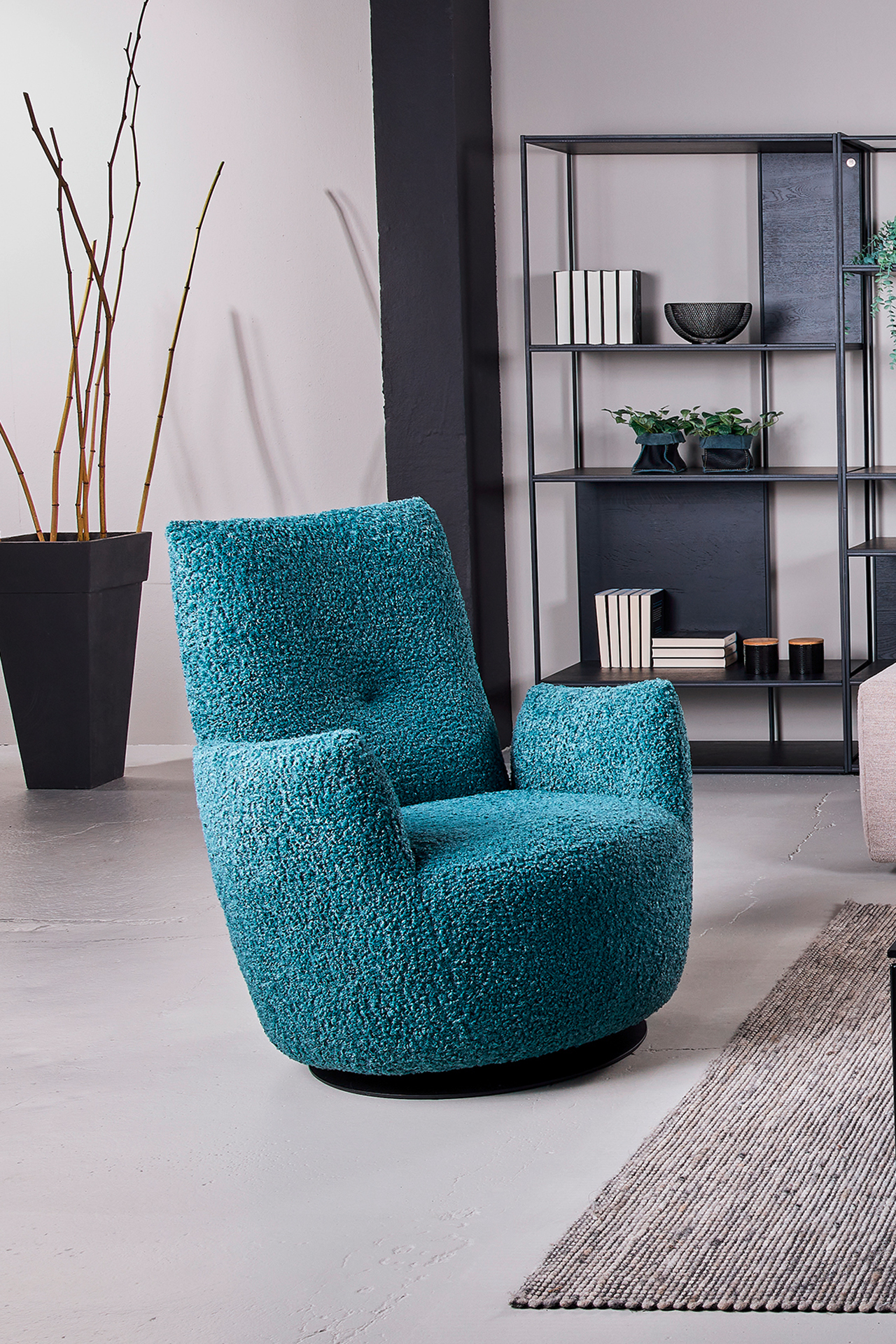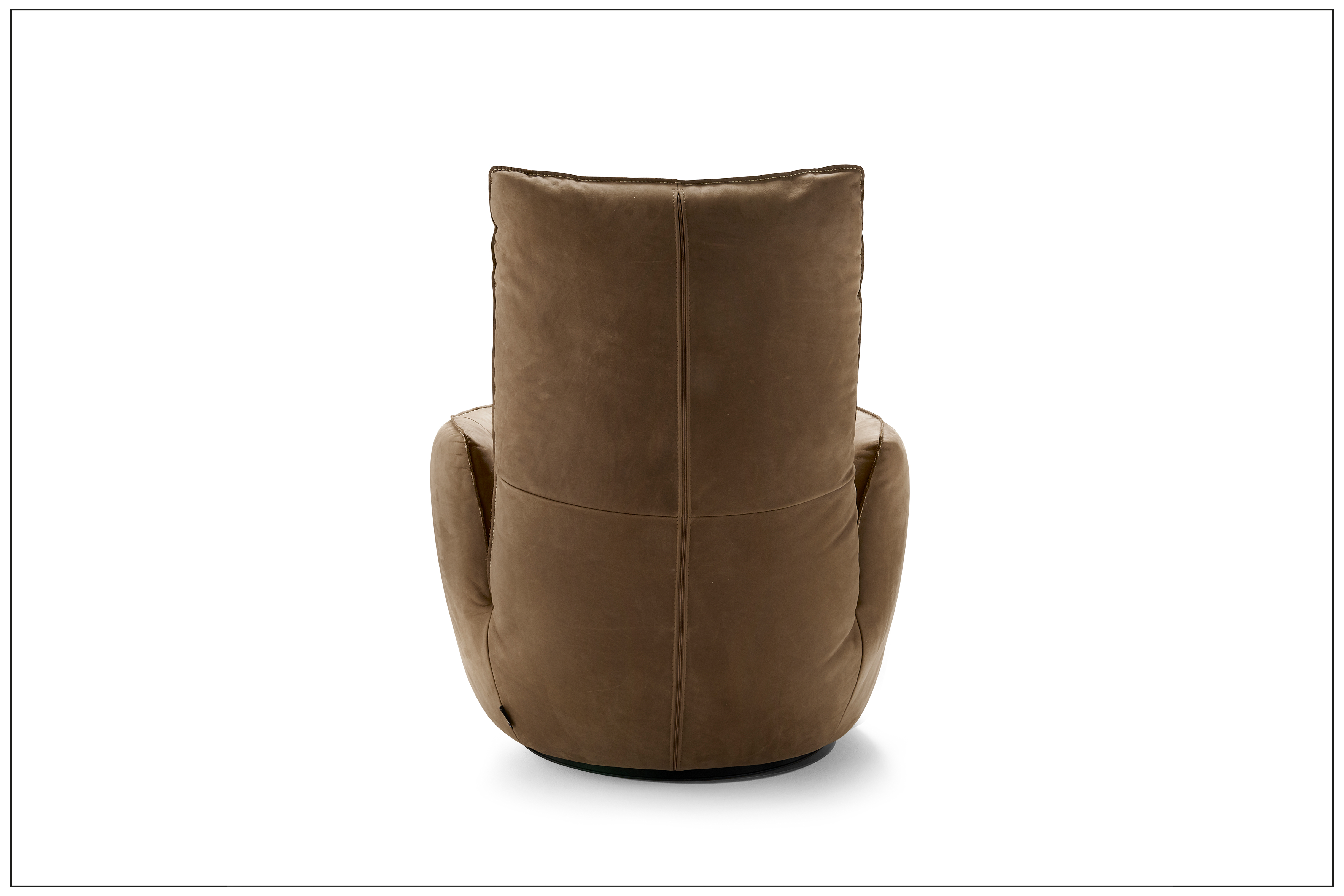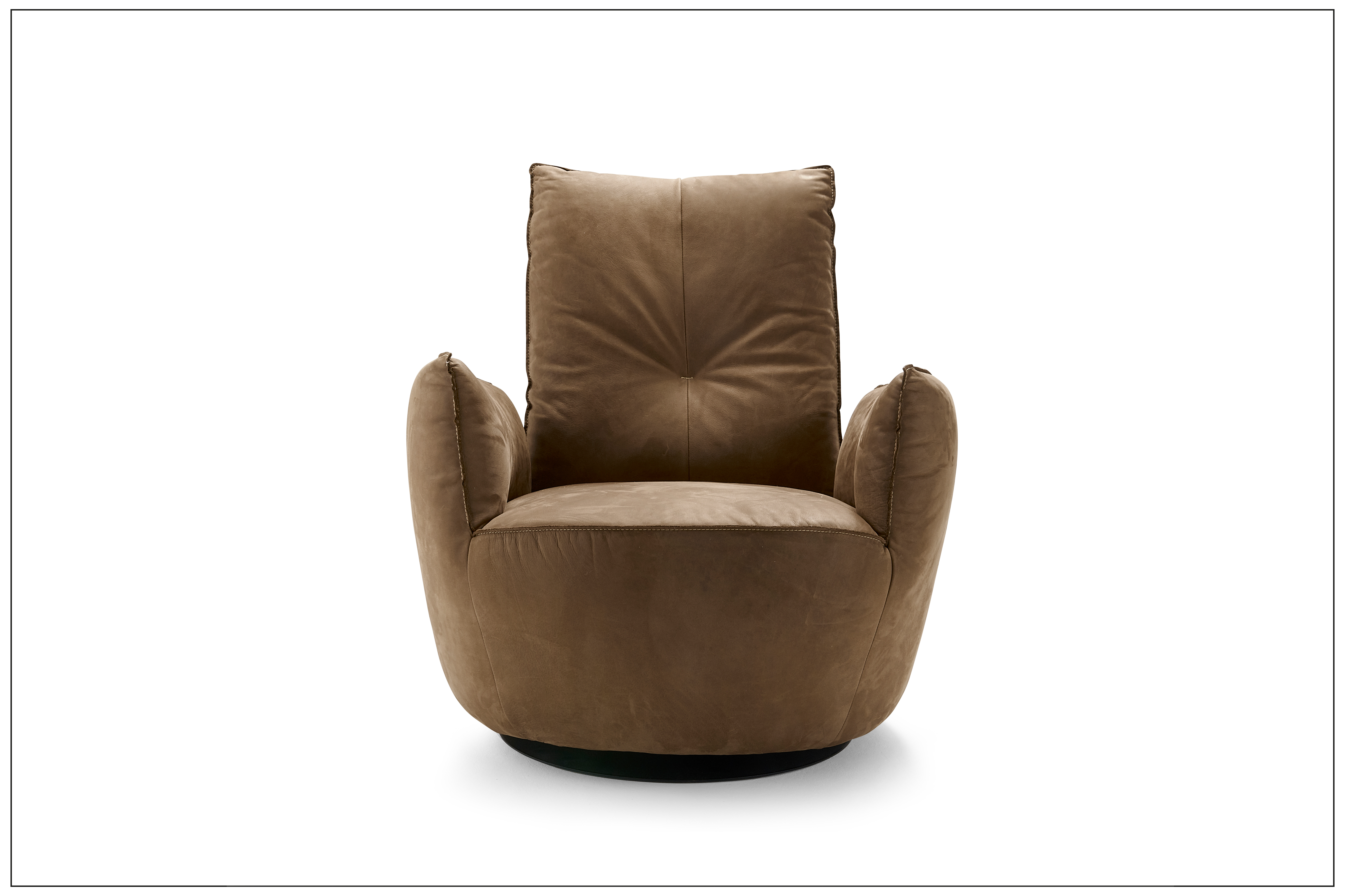 LET'S SWING AND FEEL GOOD. CASUAL, RELAXED DESIGN. A PLACE TO FEEL GOOD. UPHOLSTERY IN SOFT CUSHION LOOK. THE SWIVEL CHAIR WITH HIGH BACK SHELL AND 360° SWIVEL FUNCTION OFFERS MAXIMUM SEATING COMFORT. BASE PLATE MADE OF STEEL, BLACK STRUCTURE-COATED FOR A FIRM STAND. THE LARGE SELECTION OF COVERS, EITHER IN FINE LEATHERS OR IN PATTERNED / PLAIN FABRICS, CHANGES THE APPEAL OF THE SMART PIECE.