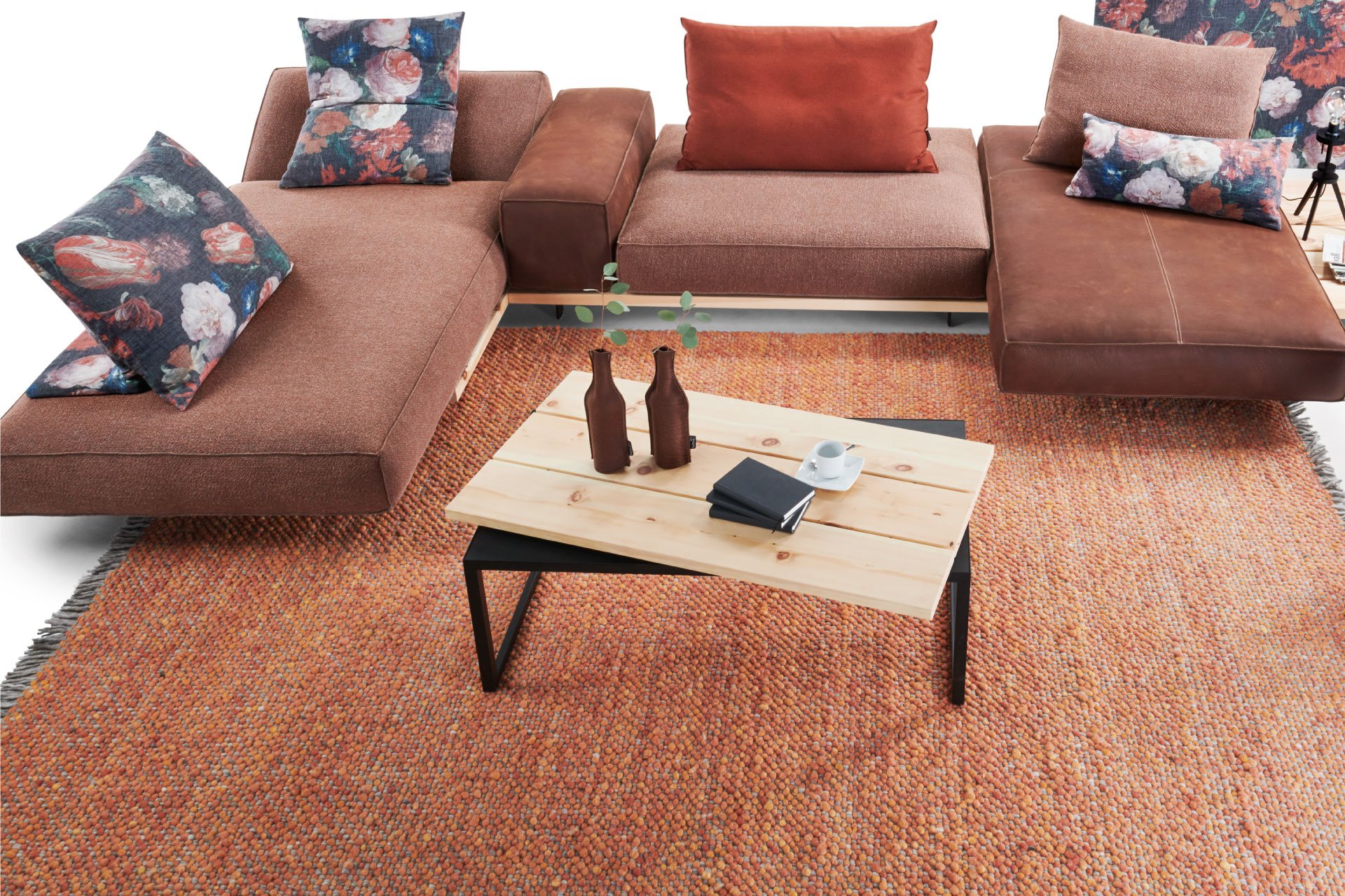 BEST QUALITY MADE FROM 100% VIRGIN SHEEP‘S WOOL. DURABLE AND EASY TO CARE FOR. ENVIRONMENTALLY FRIENDLY DYED YARNS WOVEN ONTO A JUTE WICK ENSURE STABILITY. EACH PIECE IS UNIQUE.