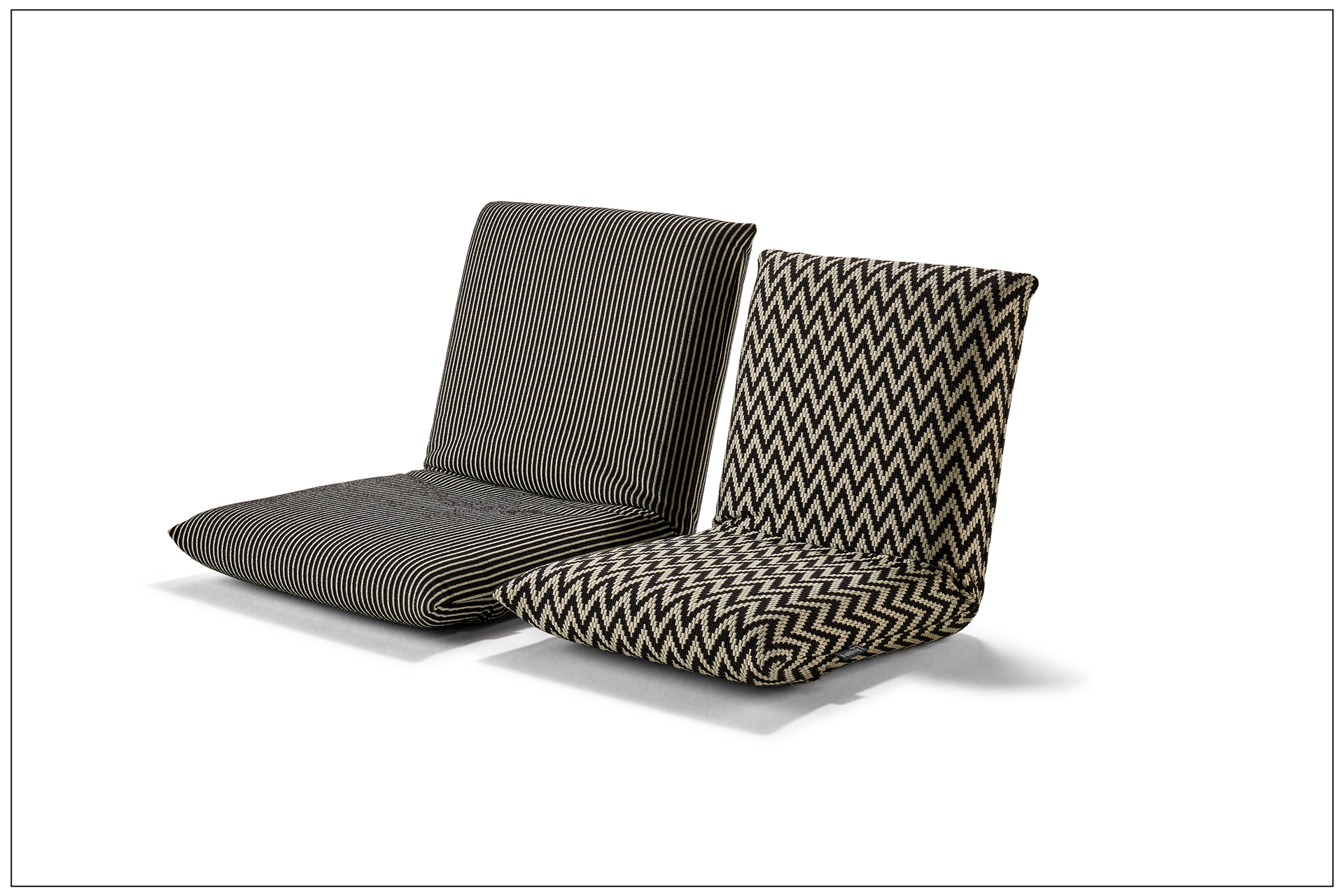 EASY SEATING. THE SMALL MIRACLE CUSHION FOR INDOOR USE, FOR THE DINING TABLE, THE BENCH OR AS A CHAIR PAD FOR CHILDREN. COMPLETELY ADJUSTABLE INTO HORIZONTAL POSITION, THE DESIRED BACK POSITION CAN BE ADJUSTED IN STEPS. AVAILABLE IN TWO WIDTHS. COVERS FROM A LARGE COLLECTION OF FABRICS AND LEATHERS. INDIVIDUAL SEAM TYPES AVAILABLE. ALSO AVAILABLE FOR OUTDOOR USE. UNIQUE PIECE PRODUCTION.