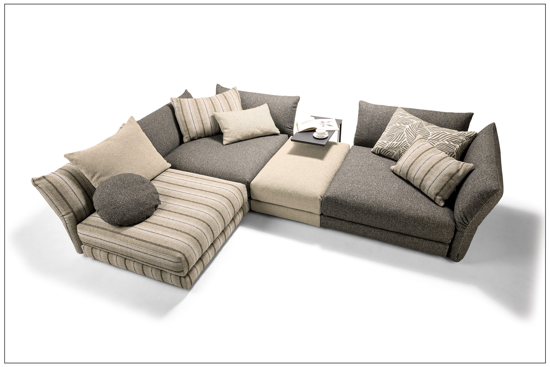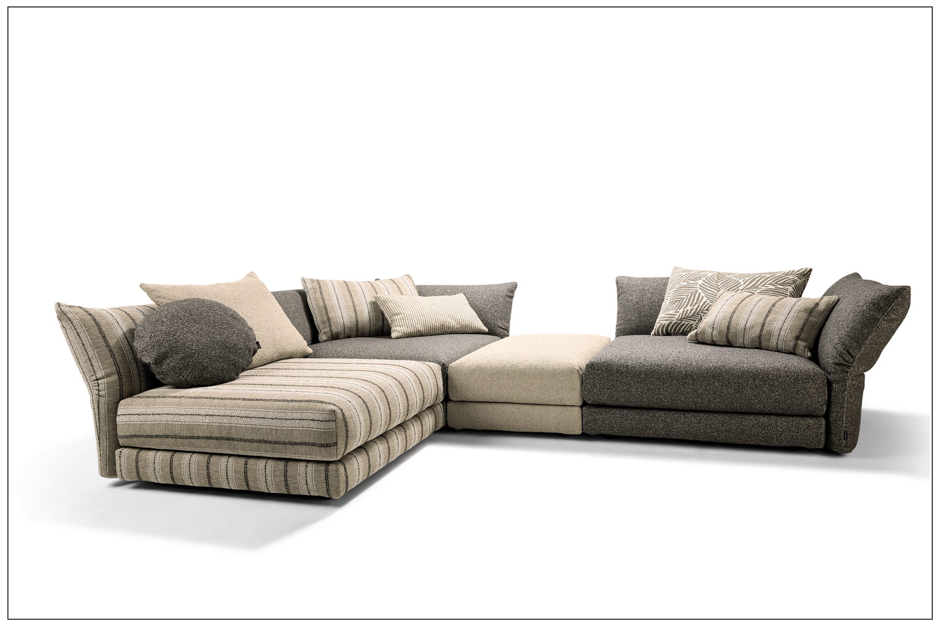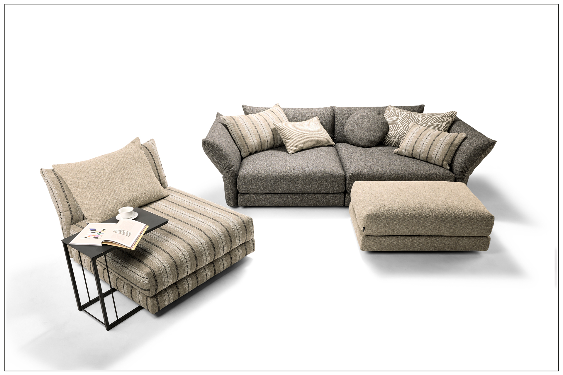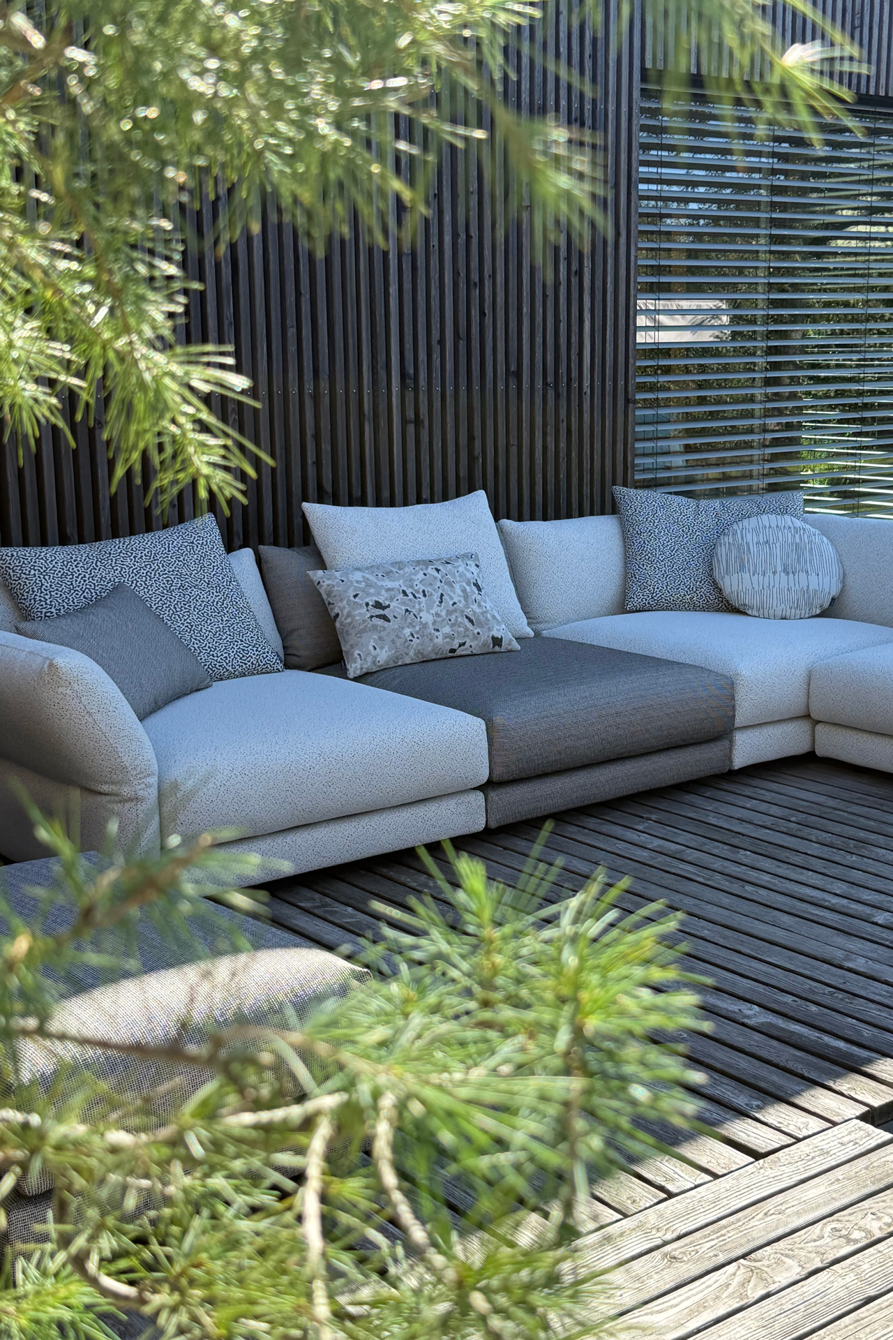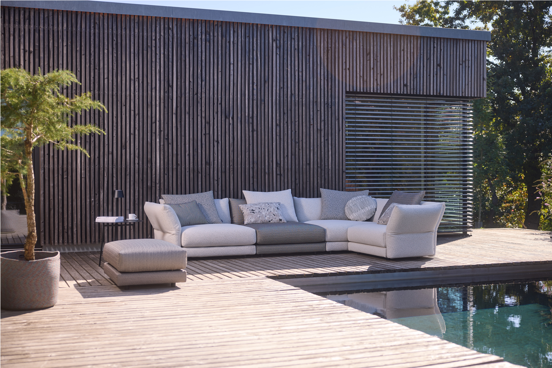 THE LUXURY RENDEZVOUS. THE THREE LUXURIOUS DESIGN ELEMENTS OF OUR BULLFROG OUTDOOR COLLECTION ALLOW WONDERFUL CUSTOM CONFIGURATIONS. ELEMENTS WITH FLEXIBLE BACK AND ARM SECTIONS AND A LOOSE-FITTING SEAT CUSHION, ALL IN SUPERSOFT COMFORT. THE RICH SELECTION OF OUTDOOR TEXTILES OFFER MANY POSSIBILITIES FOR INDIVIDUAL DESIGN. UNIQUE PIECE PRODUCTION.