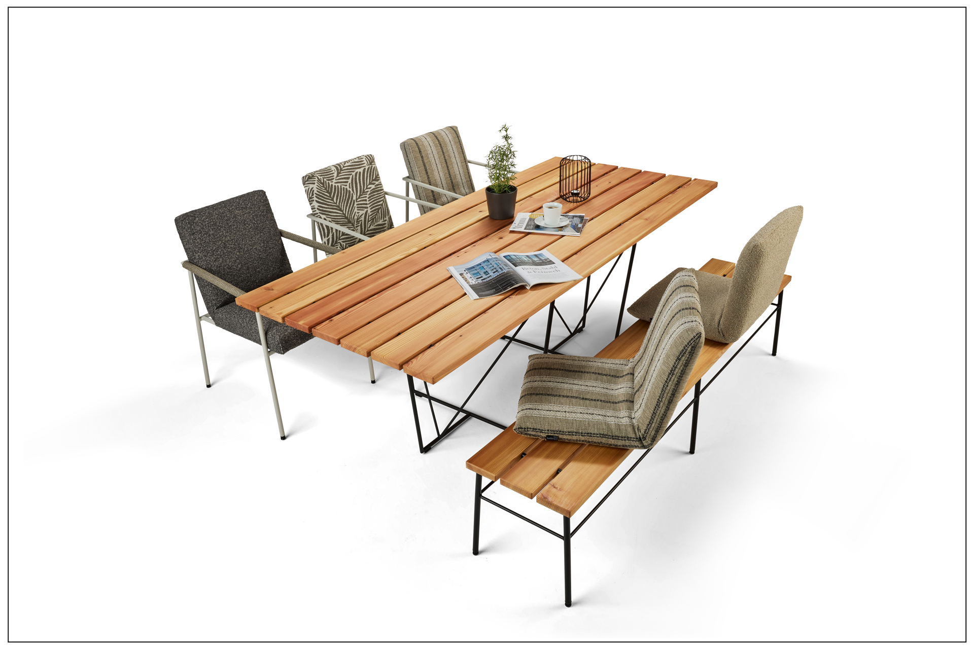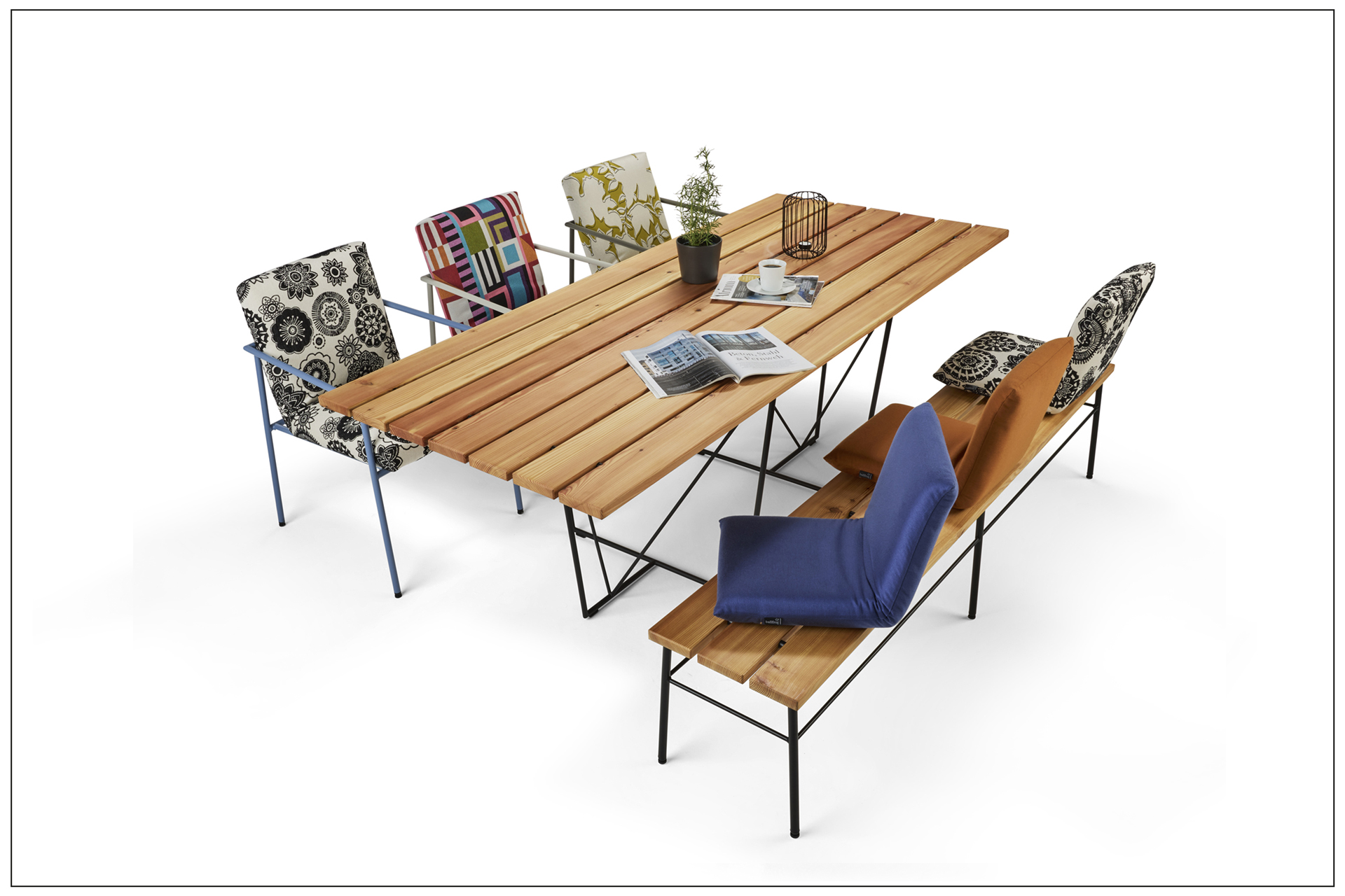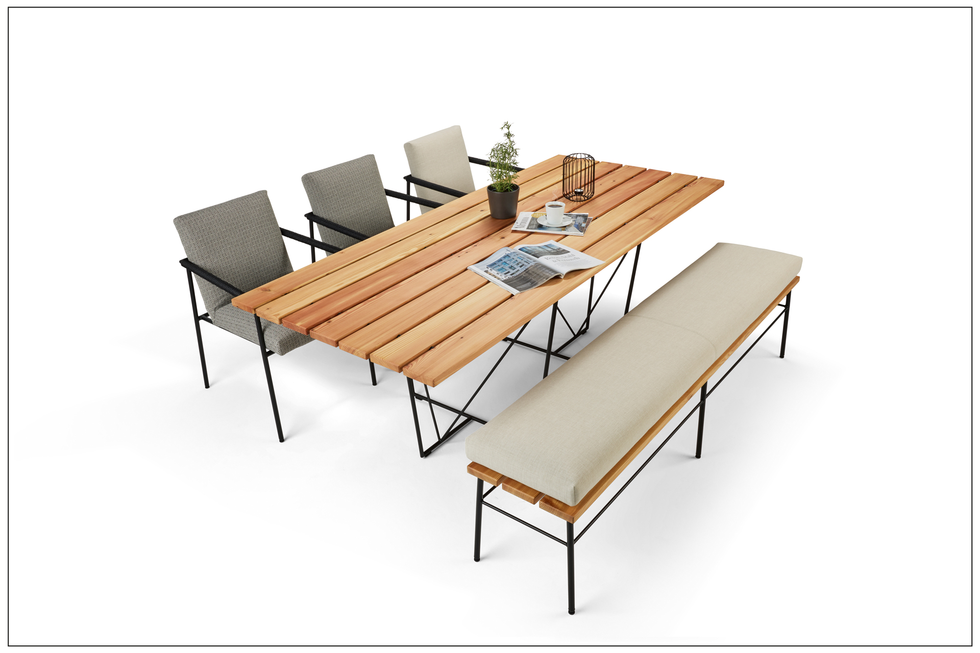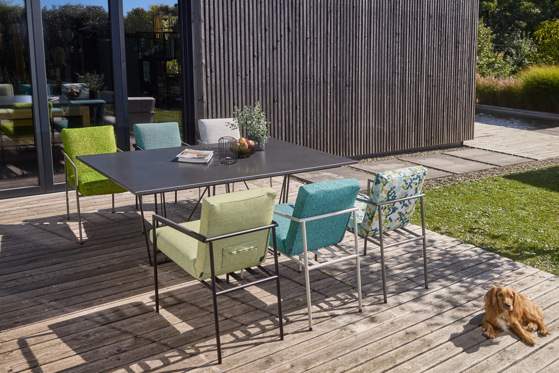 OD FELICITA: PURE, ELEGANT AND COMFORTABLE. COZY TOGETHER AND HAPPY TOGETHER AT THE LARGE TABLE AND IN COMFORTABLE SEATING. THE ARMCHAIR IS STACKABLE. THE DESIGN, MINIMALISTIC AND FUNCTIONAL. THE FELICITA TABLE WITH AN AESTHETIC LIGHT STEEL BASE AND THE TABLE TOP IN A COLUMN LOOK IS A PURISTIC OBJECT AND WONDERFULLY COMPLEMENTS THE DESIGN ENSEMBLE. THE FRAME MATERIAL, OD POWDER COATED, IS AVAILABLE IN 4 COLOURS. FOR EVEN MORE COMFORT THE CHAIR ARMRESTS ARE OPTIONALLY COVERED WITH OD ROPE BREAK.