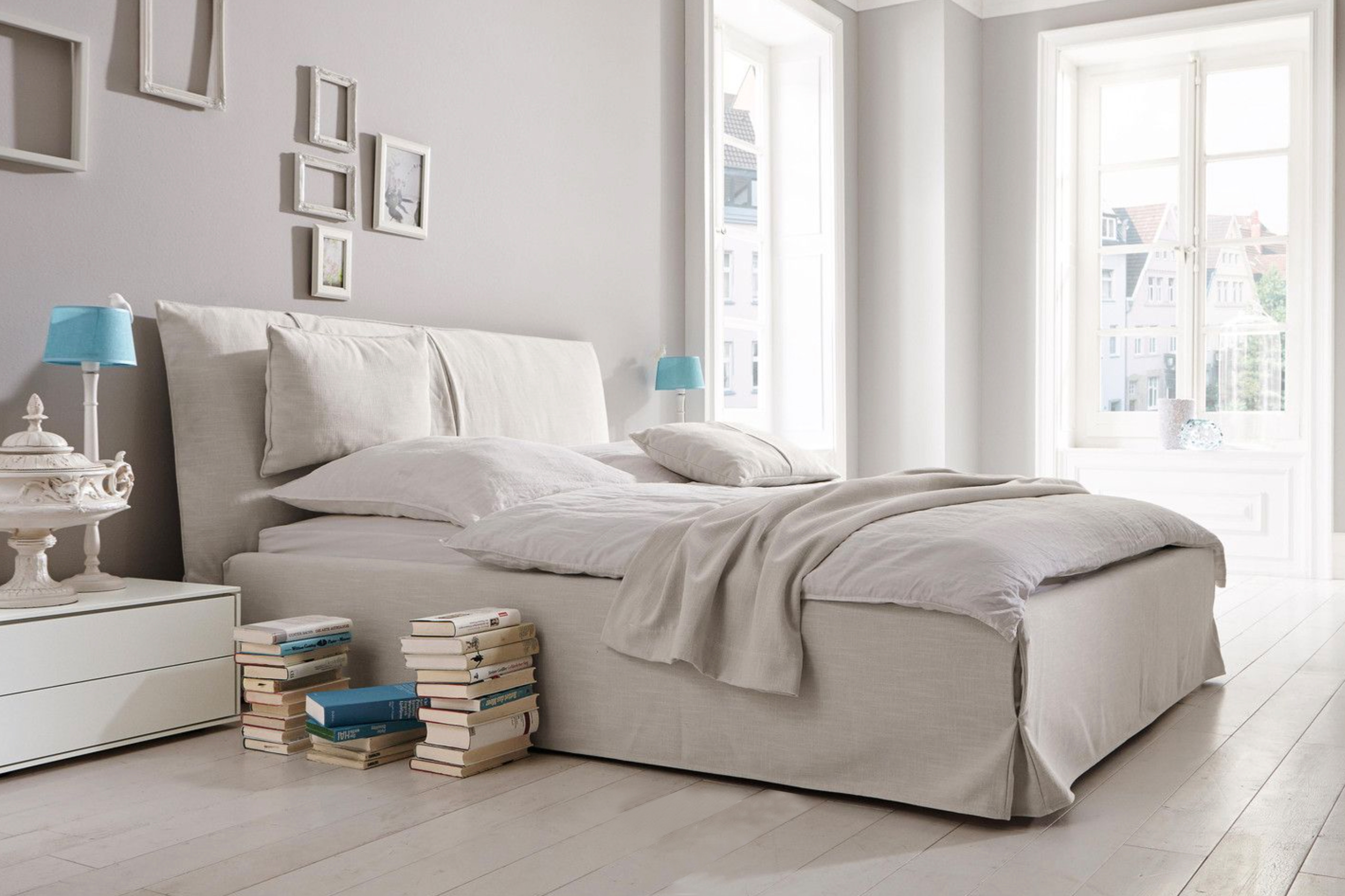 THE COMFORTABLE SLEEPING PROGRAMME WITH REPLACEMENT COVER IN 2 VARIATIONS - EITHER WITH BOX PLEAT OR WITH ZIPPER. THE COMFORTABLE BACK IS PADDED WITH HIGH-QUALITY DOWN TICKING AT THE FRONT. THE INSERT DEPTH OF SLATTED FRAME IS ADJUSTABLE, THUS THE HEIGHT OF MATRESS CAN BE ADJUSTED INDIVIDUAL. UNIQUE PIECE PRODUCTION.